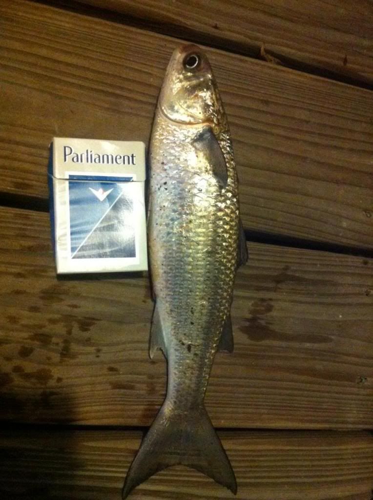 Decided to take Mom out last night for some last minute shrimping and fishing. Got on the water a little after 7. Managed to land enough shrimp for dinner tonight and got a bunch of mullet for bait… Speaking of… check out this horse mullet that came up in the net. Back at the hill around 10. All good sized shrimp. About 300 yards from my landing on the Cooper.