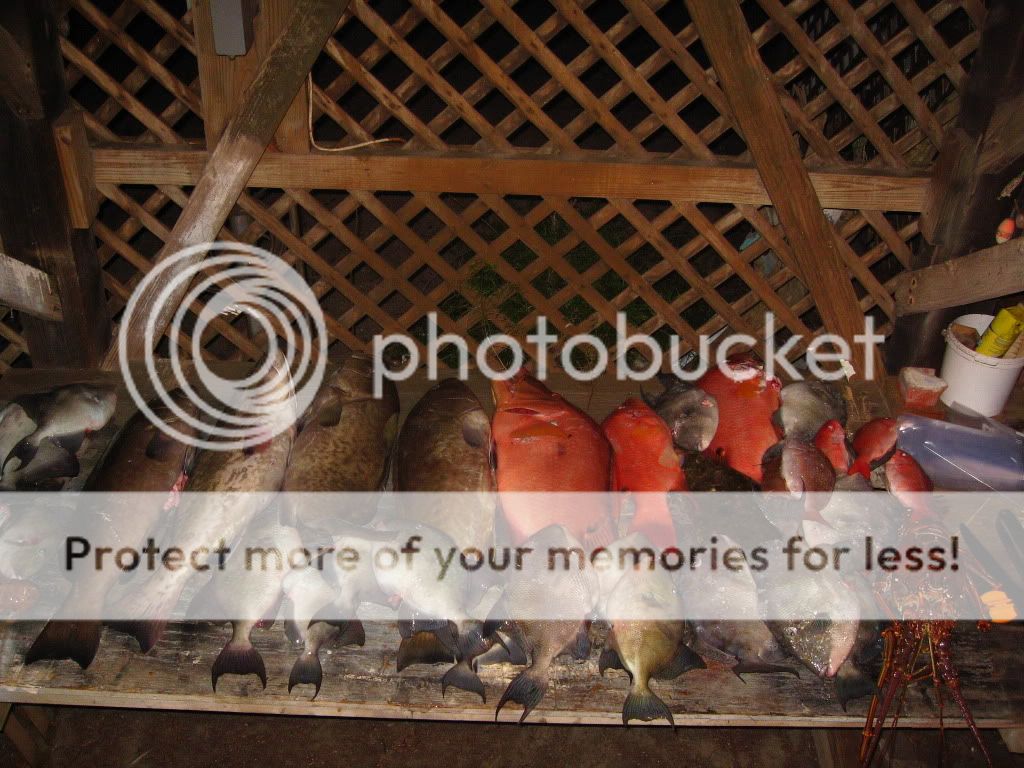 On my 1st dive, I accidentally cut the 400lb mono leader that connects to my spearshaft so i freeshafted a few triggers to add some meat to the box. On the way up the only trigger on my stringer that was still alive bit me in my butt and locked on. I was screaming underwater and it took several hard pulls to get him off my butt. Then 1 min later he bites me in the arm and i had to pry him off again. Enuf of that…I pulled out my Riffe dive knife and chopped him up on my saftety stop. Pretty funny story once i got on the boat but my g/f verified my trigger wounds in the shower last night. Really fun day on the water and hopefully Yamaha will send me my new 300 hp motor so i can be back on my boat.