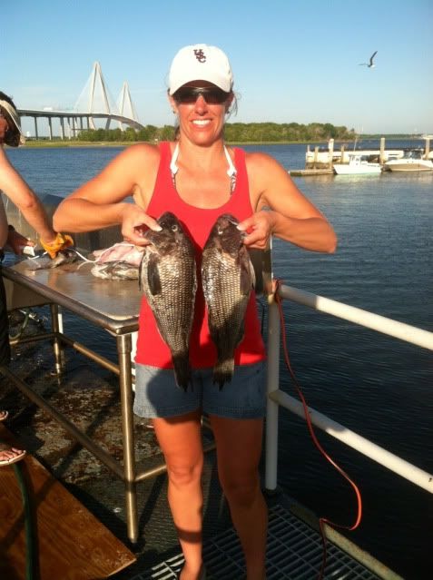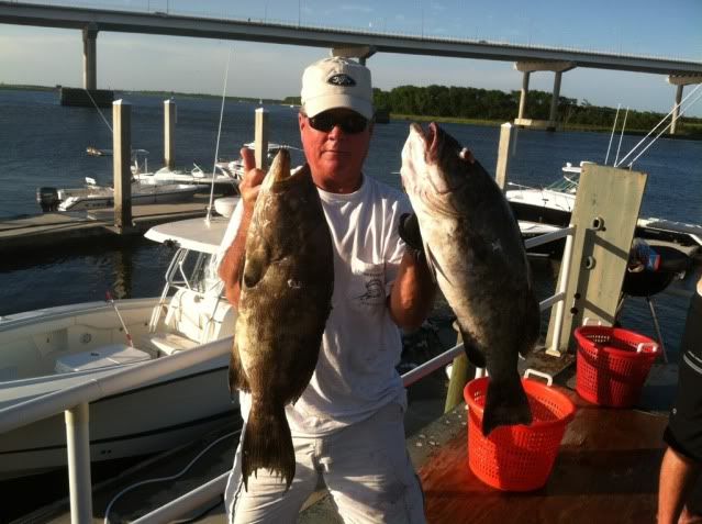 sat:if you like to dive and are not out there, you are missing the op of a lifetime! we stopped at a wreck in 110" and could see it from the surface! no thermocline and 78deg on the bottom and no current to speak of. we could see the bottom of our boat from the bottom in 110’! Ride out sat was on glass. we stopped in 100’ and caught our 5 man limit of fat bsb’s all 18" or better, a few beeliners and pinks, ajs tore up our pinfish as fast as we could get them down. angie took us to school on the greenheads and jordan spanked the hudge triggers, ended up with 13 of them.