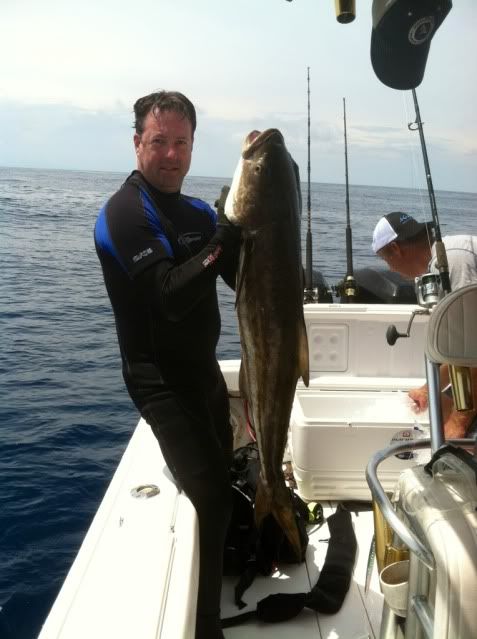 shot a few grouper and a manta ray with a 10’wingspan came by overhead like a stealth fighter with a escort of 5, 50lb cobia as his wingmen. one of the most awesome sights you can see under water and the viz was still 100’. as I rose to intercept they turned and came straight to me! at 5’ i had a speedloader malfuction and MISSED!tim has got some great video. a bunch of great dives and a pile of meat.