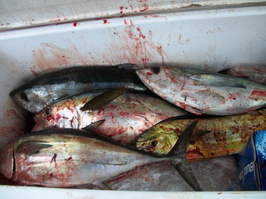 Headed to SW banks. Had a hoo on off the bat but pulled hook. Nothing for the next several hours, besides getting rained on. Found some fish on the 280 line (south of SW Banks)just past ledge in 200’. Caught 5 blackfins & a slinger dolphin, and missed quite a few good bites. Left them biting to head home. Also popped off what I believe was a hoo on the planer rod.