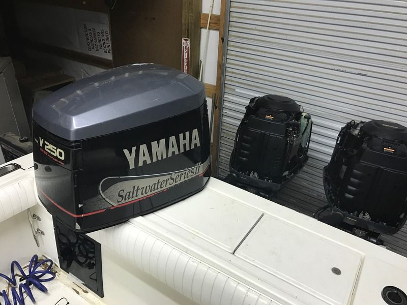 This is a complete setup to repower a boat minus steering connections. Parts motor also comes with oil tank and power trim. Motors Have already been removed. Videos of the motors running before removal are available upon request. These are great running motors and have been 30-70 miles offshore many times in the last two years. The boat is being upgraded to 4-strokes is the only reason for selling. S250TX L250TX. $8500 +shipping Obo. Possible trades[URL=http://smg.photobucket.com/user/Ridethe93GT/media/IMG_0100.jpg.html]