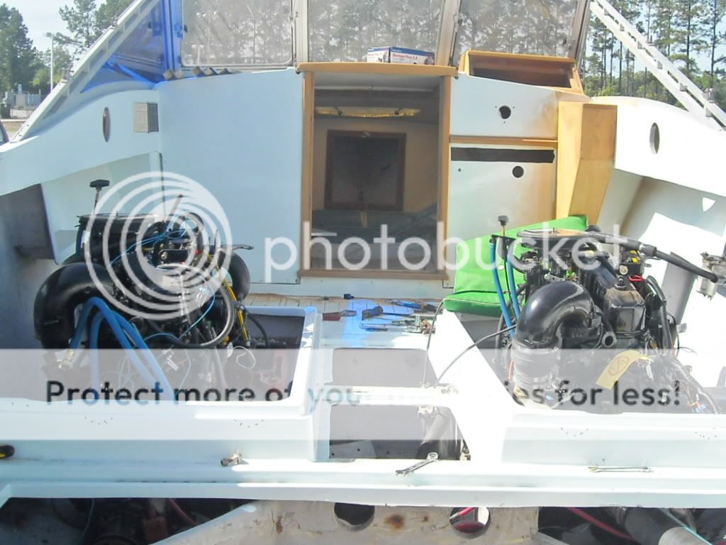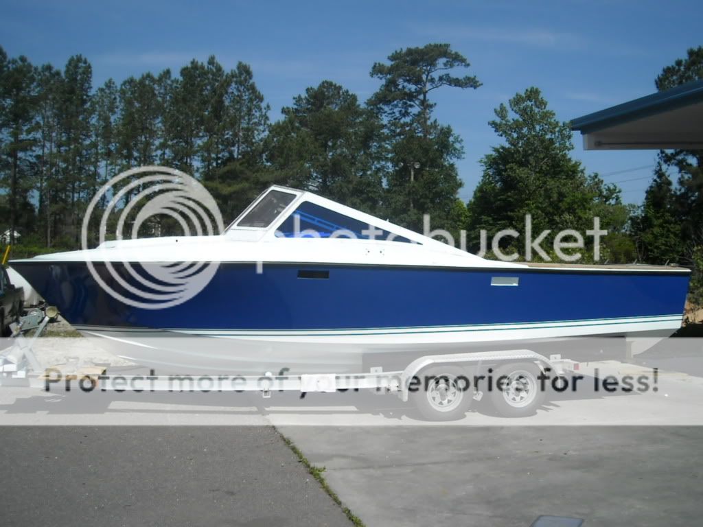 The boat had been sitting in a lake in Tenn for over 20 years. The gelcoat had blistered and cracked beyond repair. The motors had been locked up for the last 8 yrs and had to be repowered. I must say she turned out pretty sweet. Next time I think I’ll just drop it off somewhere and pick it up when it’s done!!!LOL Really tho, a true labor of love. Proud to have done it all myself.Thanks to Bobby at G crafts for the fairing and paint work. He does awesome work!!!
