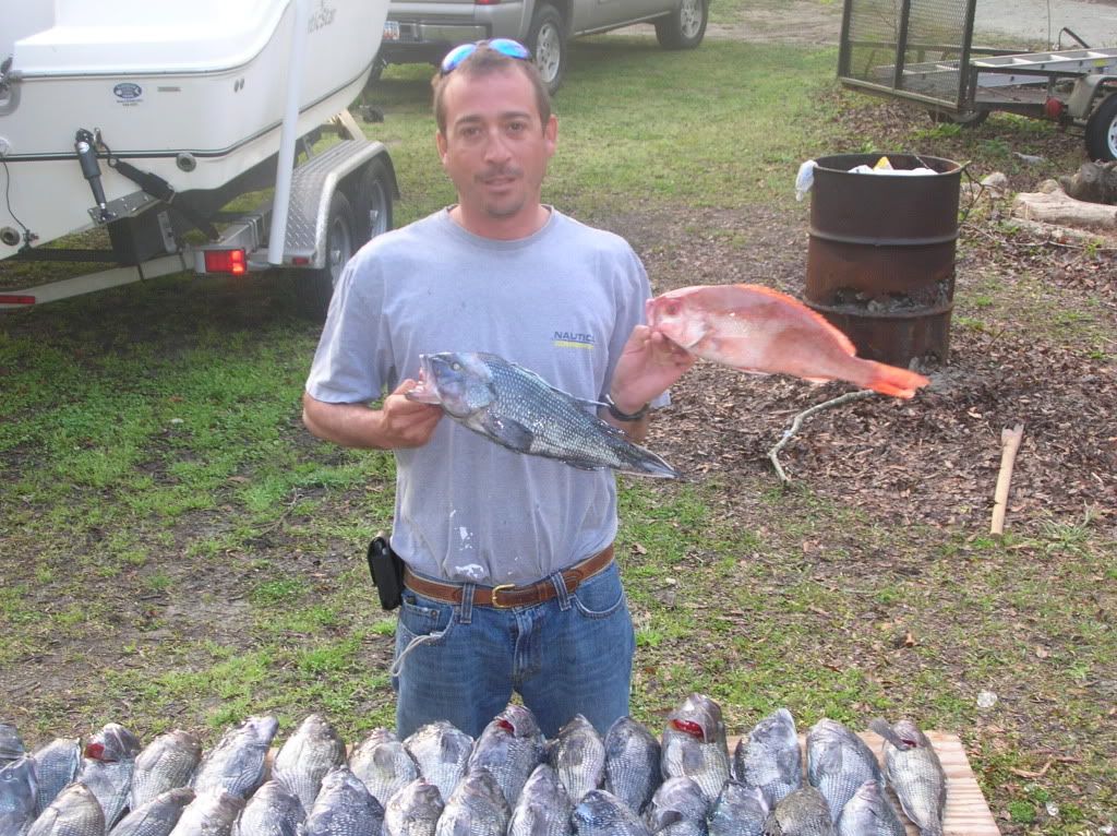 Had CaptDan and one misc. other crew member meet me at the house at 5:30, loaded up and headed out. After waiting in line at Remleys we finally had the boat in at 6:30 and made our way towards 90’. On the way we came across acres of bait so we decided to get a well full and away we went. First stop produced about 35 good bsb. Then went out a little bit to try and find some b-liners. No dice. Came back in to the same area but a different spot and finally found some variety. Ended up finishing our limit on bsb, caught a couple triggers, a few pinks, some vermillions, grunts and one ARS. Headed in around 4:00, an awesome ocean all day.