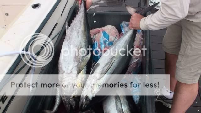 Left the Harbor headed North at Noon for the afternoon bite with with West wind behind us for smooth ride out. Wind shifted to the east once past weather buoy. Caught 6 blackfin and lost one head shakin unknown. Headed back about 6:30pm with east wind at stern. Hot color blue and black. All fish hit between 160’ and 220’ in about 68 degree water. Good times.