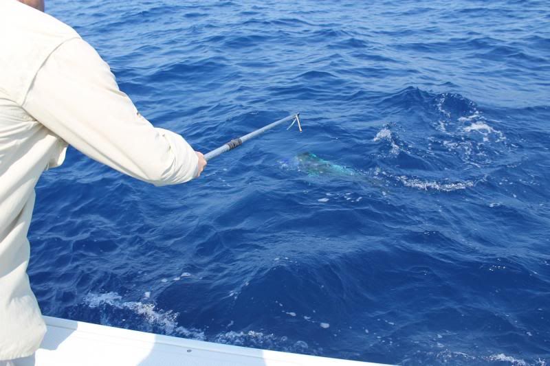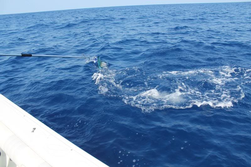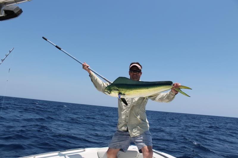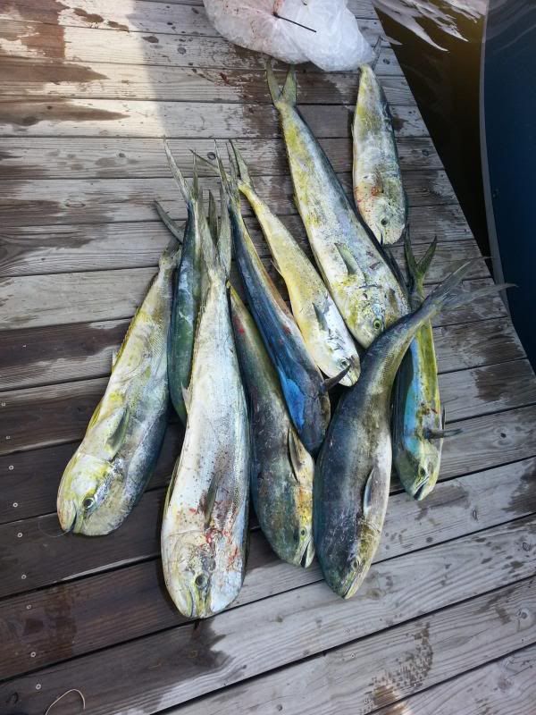 Got invited to fish a friends new-to-him 26 sailfish. Headed towards 226, started trolling in about 250 feet. Slow morning picked up 2. then we had about 1hr or so of lots of action. But due to get the rust out(1st trip of the year) we only managed 4 more dolphin. then we picked up 2 more later in the afternoon.