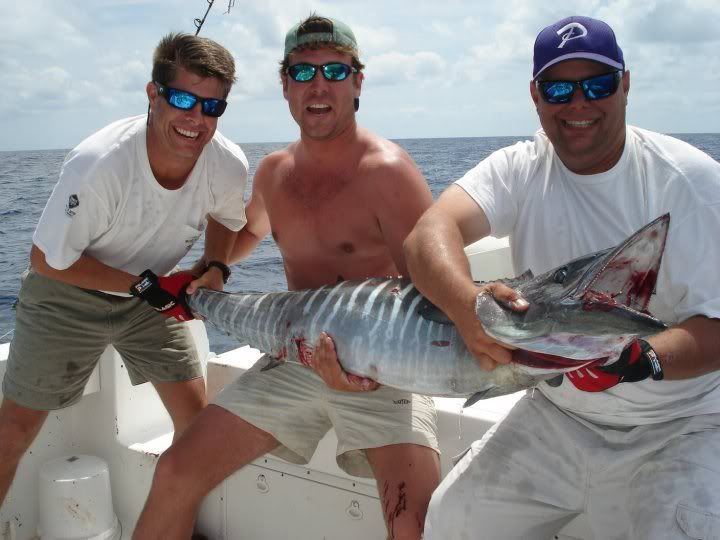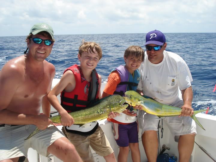 Myself, Rufus, Gaff addict, Rustin, and 2 young boys headed out today and had ines in this morning right after 7. We picked up a peanut right around 8, then another around 8:45ish. Showed the two young boys a thing or 2 about catch and release with the small dolphin and continued to troll out to around 600 then back to 350. around 11:30 the planer started sceaming and we had a nice 56lb wahoo in the box shortly there after. Then as soon as we put the spread back out we picked up a nice dolphin on the planer and another nice one on top. picked at them slowely from then on and ended up with 8 dolphin and 1 wahoo. Released 3 peanuts as well.
