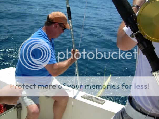 well we got a late start due to an electronic issue but cleared the rocks at 6 and dropped lines in around 8:30 with two right off the bat. went really slow for the next couple of hours and picked up a little after 12 and picked at the mahi til about 3:30 and headed back. Nothing real exciting happening out there. stayed around the ledge the whole day. couldnt find a good temp break or weedline. some scat grass here and there and a few flyers.