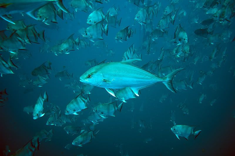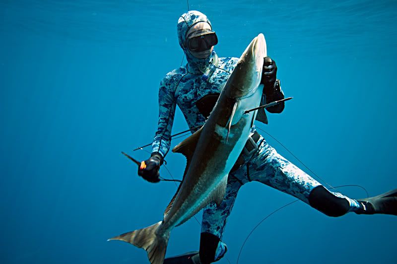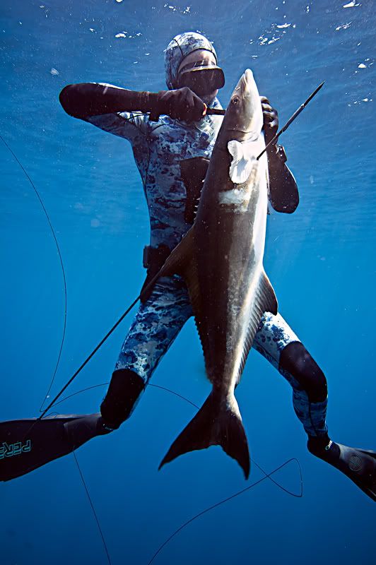 Even though there was so much marine life that kept most of us in awe, it didnt stop Michael too long. Just after entering the water, Michael made a drop through some AJ’s to collect on a nice size Cobia. When Michael surfaced from the depths, he shouted to who ever was around. I think most of us were still in a trance like state due the vast amount of activity in the ocean.