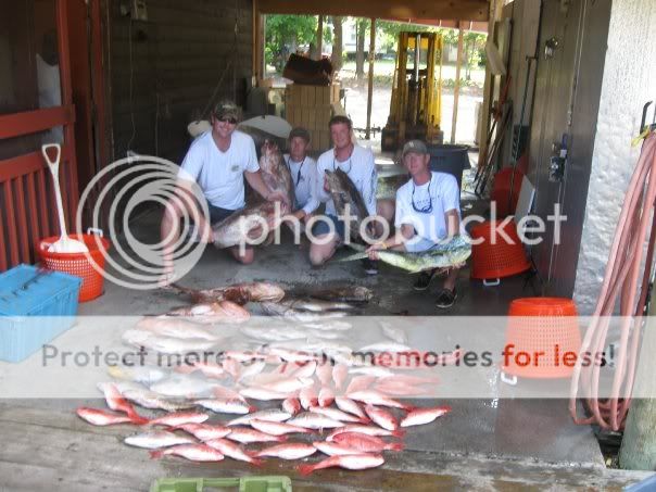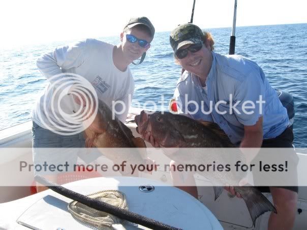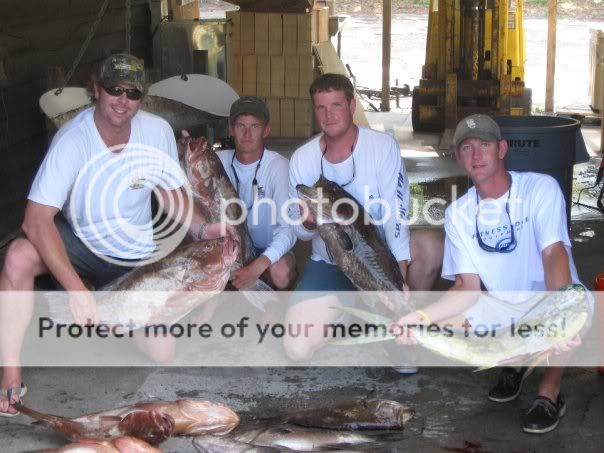 Took the Skint Back out yesterday morning to do some bottom bumping. Captain David Westfall (haha for those that know him), Christopher Conklin, myself, and a green horn Jimmy Maier left out at 4am and got to richmond to jig up some bait just before sunrise. Plenty of bait in the boat in 30 minutes. Headed to some old Loran numbers we had and it was on. We limited out on Grouper Bliners and Pinkies. We also had a mahi and a mixed bag. Chris saw the mahi come up to the boat and was tying a long leader for a grouper reel and threw the leader at the mahi he took it and Chris had to hand line him in. Definately one of the coolest things I have ever seen. We hammered the fish all day. They were everywhere. Grouper ate everything we put down. Live cigars,frozen sardines, cut boston mackeral, shrimp jigs, ect ect… Great day on the water I am at the office as tired as I have ever been on a Monday morning. Here are some pics-