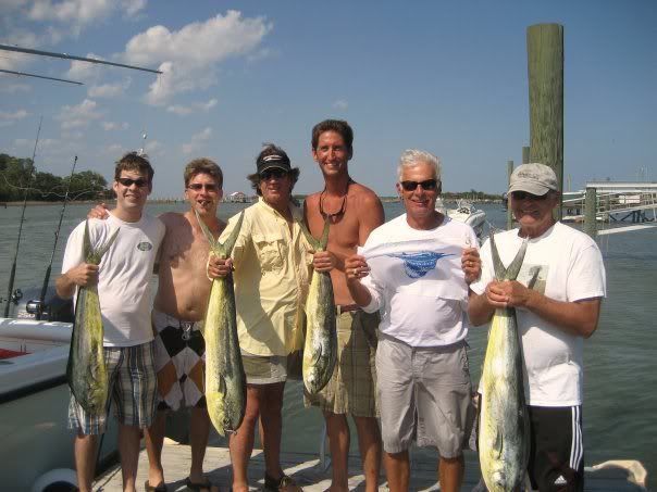 Fishin was slow for the first 2 hours, but then finally got my father in law his first bill, a sail, in 220 ft of water. Got 5 dolphin and lost 3 more due to rubber hooks. Then pulled the hook on another sail and decided it was time to head to the hill. Home early at 2pm.