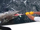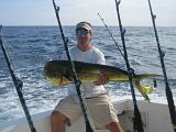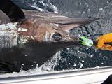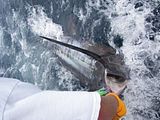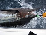 I took a group of friends offshore Sunday and dropped lines near the outcrop by 7.30. Picked up 4 dolphin over the next hour. At about 10 am the short rigger went off and we saw Mr Blue dancing! It took about and hour and twenty minutes to bring him along side for release. Estimated the length at 7’ and weight 250-300lbs. It was the 1st marlin on the 40’ Ocean, and the 1st fish on my new Tiagra 50 wide. Topped off the day with 2 more dolphin and a smoothe ride in.