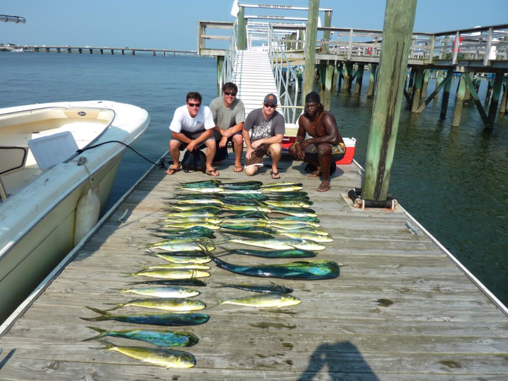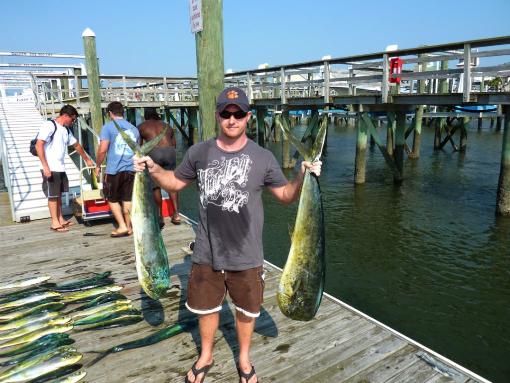 Left Folly this morning around 4am. Drove out at 35-40 towards the 226. Got first dolphin within 10min of lines being in the water. Kept hitting them after finding a good weedline trolling. Then found got on top of them and started using the spinning rods as well. Got a big bull while using the spinning rods. Caught our fill and threw several back. Had a guy experiencing offshore fishing for the first time today and he brought in the first fish. Drove back in at 42mph and got back to the dock at 4pm and cleaned all these fish. Plenty of meat for awhile now. Super great day. We thoroughly enjoyed ourselves.