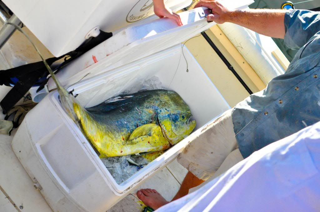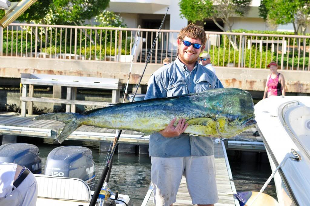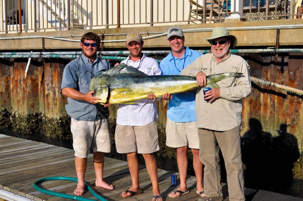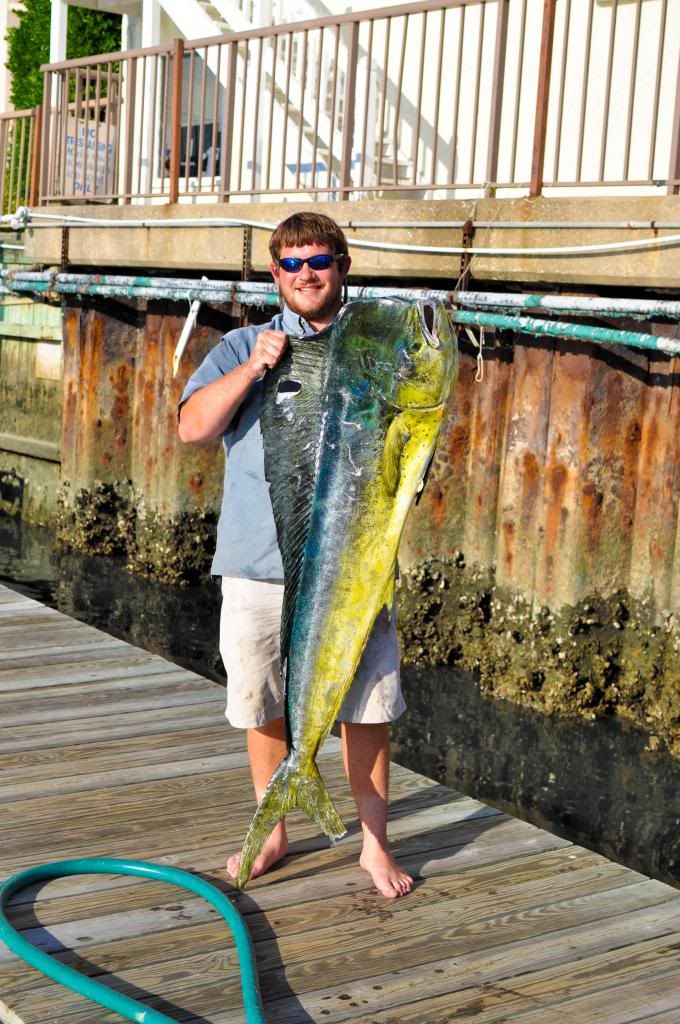 Left out of Murrels Inlet around 4am and headed to the GTH. Lines went in shortly after 7. Two minutes after lines in, BAM ZZZZZZZZZZZZZ!! 15 minutes later, 46 pound bull in the boat! shortly after we had a double on and lost the nicer fish. the action really slowed after that until the afteroon when we picked up a few more dolphin and a cuda. We had an awesome time with a quick ride home. My dad was on the fence about the weather and wasn’t planning on making the trip but I told him I really wanted him to come for his father’s day gift and boy am I glad he did. That was the biggest dolphin either of us have ever been a part of catching.