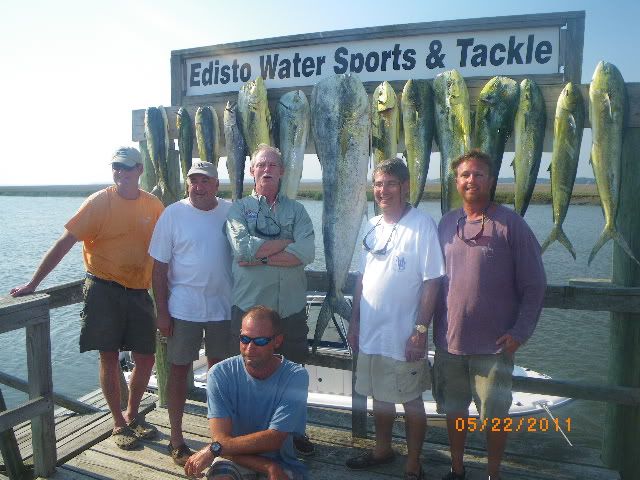 Enclosed pic of 62 lb dolphin caught, yesterday, by Peter Pearson, while fishing with Capt Charles Yeomans, of Edisto Island. Pat McWhirter, Ron Davis, and Jeff Geoff helped with the other 16.