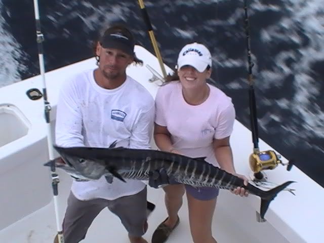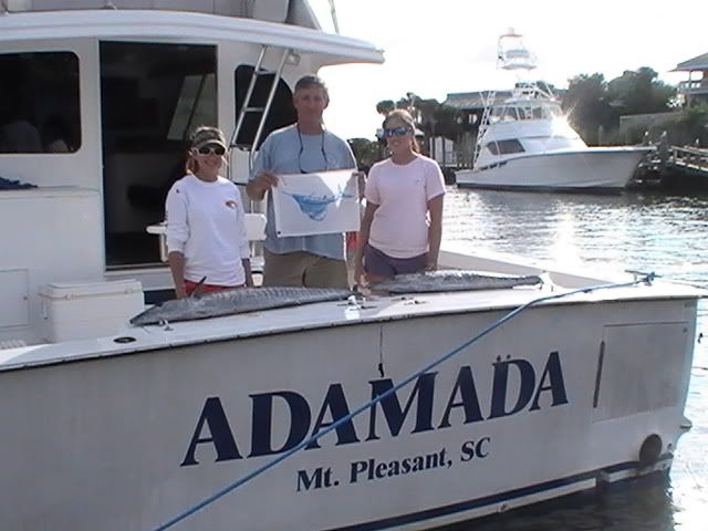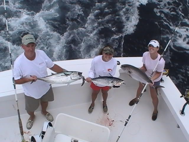 Had a real rainy day trip Friday, left the dock raining, poured down all the way to the ledge, slacked off a little to get lines out, never got bit til 9:30, peanut dolphin. Found a live bottom area and then the fun began. I had a dad, his daughter and her friend, both in their second year at Clemson on board. We caught quite a few fish, everyone had a great experience. Ended the day with: