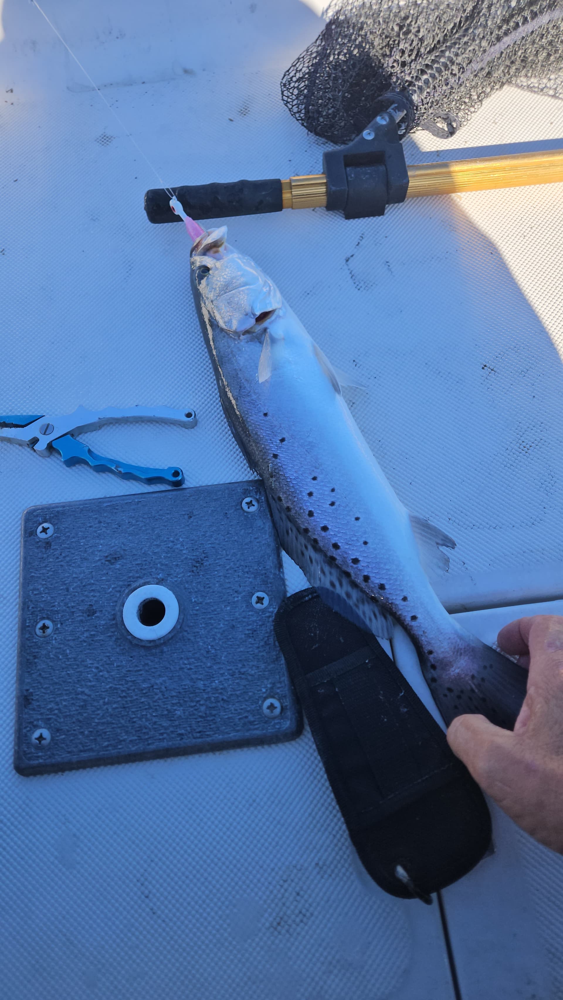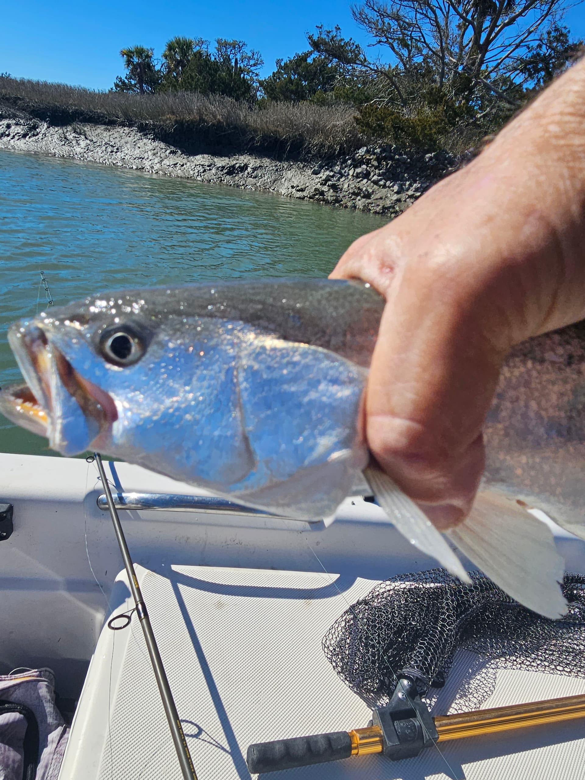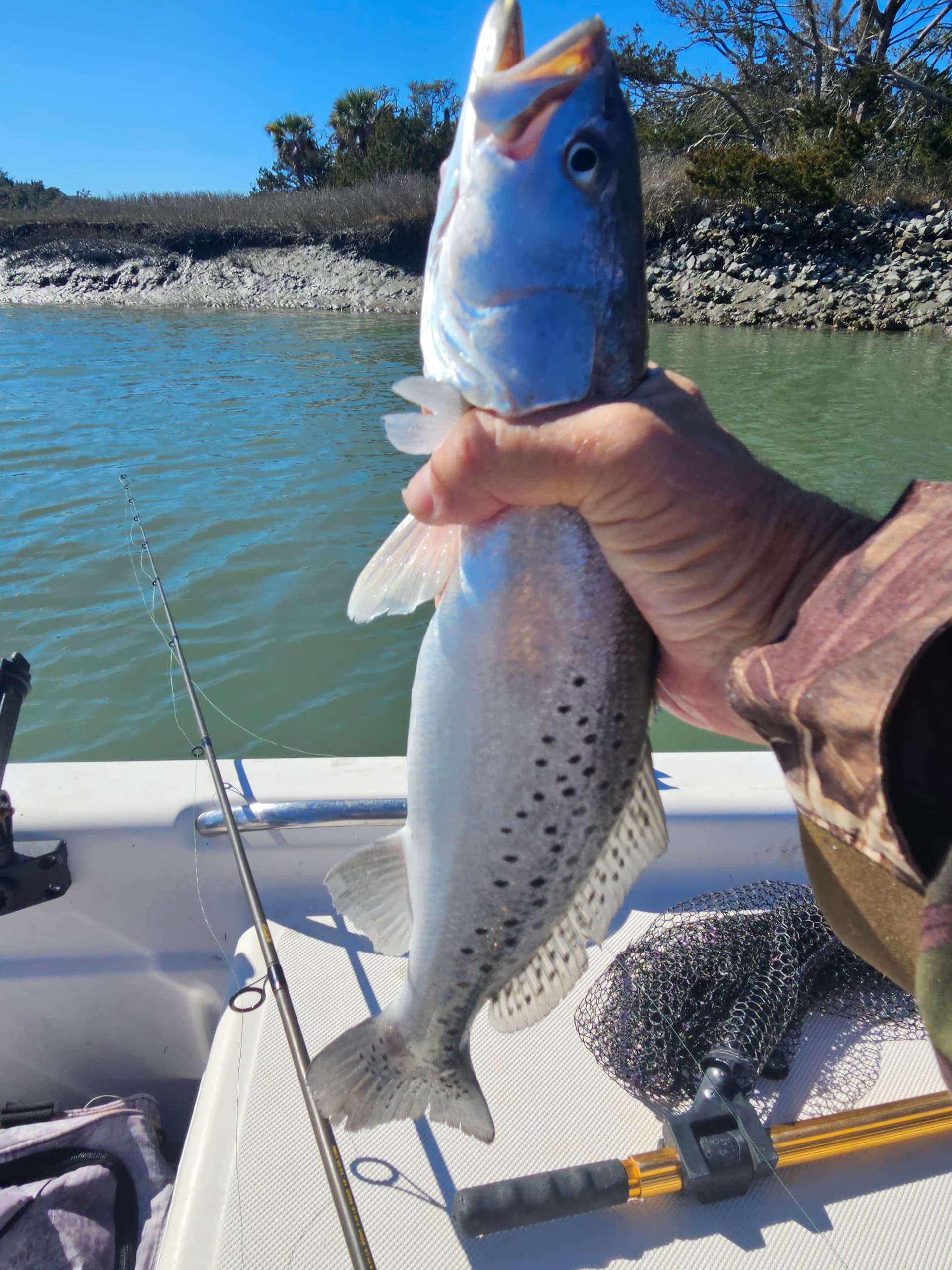 Took the wife for a couple hours today a bit windy for sure…no reds today all Trout released to play another day!
