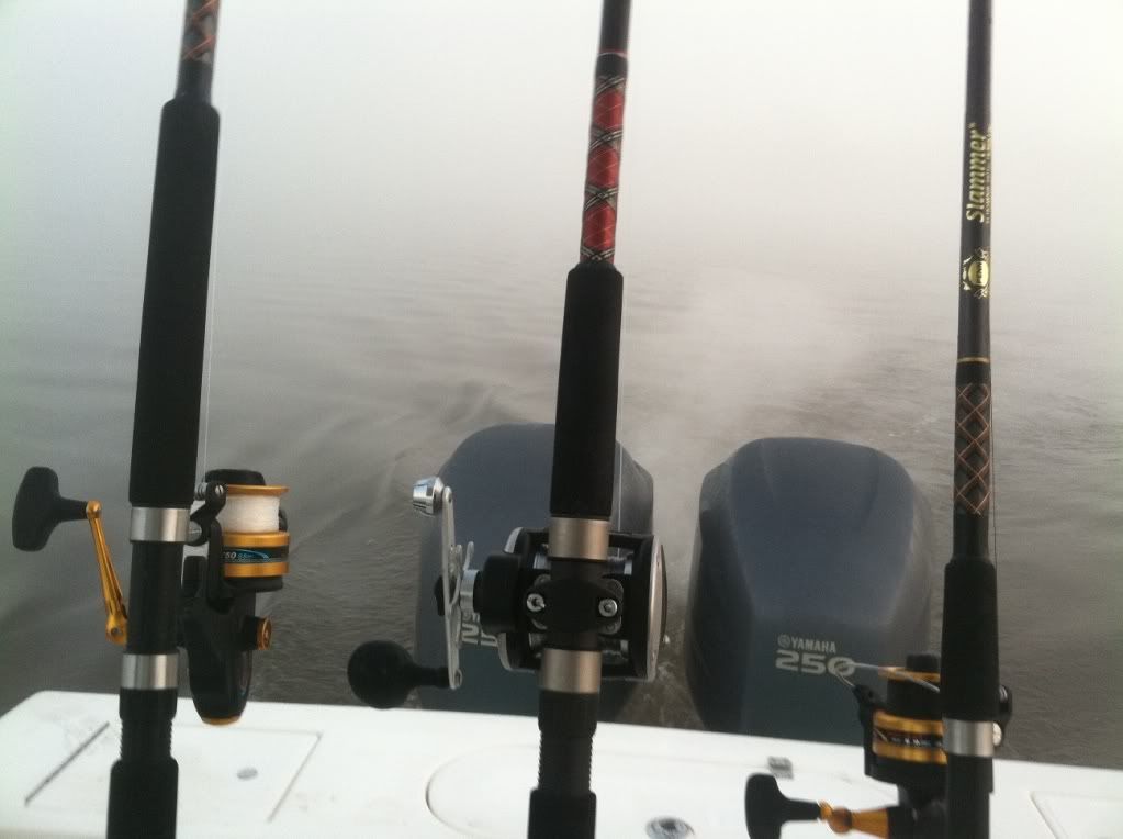 We left out of Georgetown on Saturday morning after day light with 3 of us on board the Miss Ella Pearl for some bottom fishing. Fog was so thick you couldnt see much past the bow of the boat. We headed out slowly and a Tug calls and tells us a barge is on the way in. Its getting fun already.
