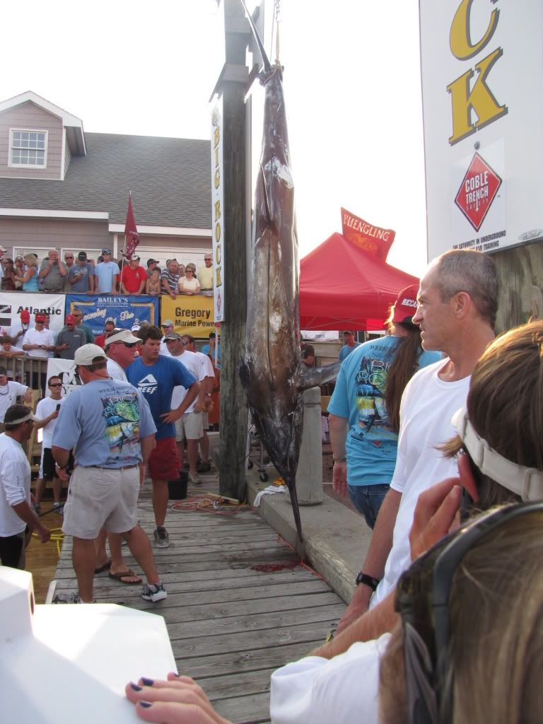 Ok here’s the story which is a little different than I had thought at first…The fish has been DQ’d because the mate didn’t have a valid saltwater fishing license. The owner asked him and he said he did in fact. When they weighed the fish they found the truth, he purchased one via computer at 5 that afternoon when they got back to the dock with slobo marlin but it was too late! First place will be “Carnivore” with a 528 which is now worth just shy of a million bucks.