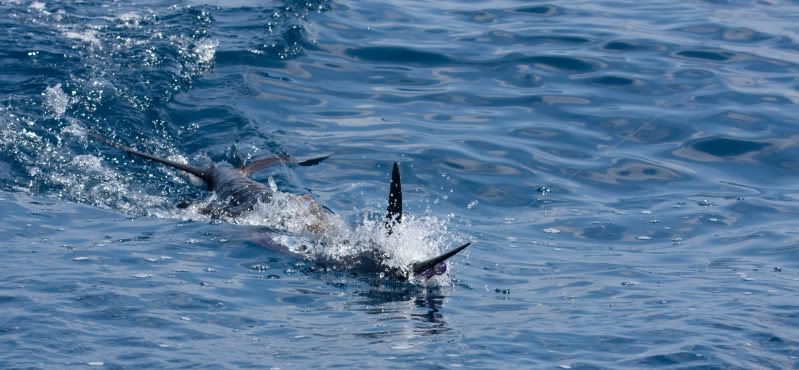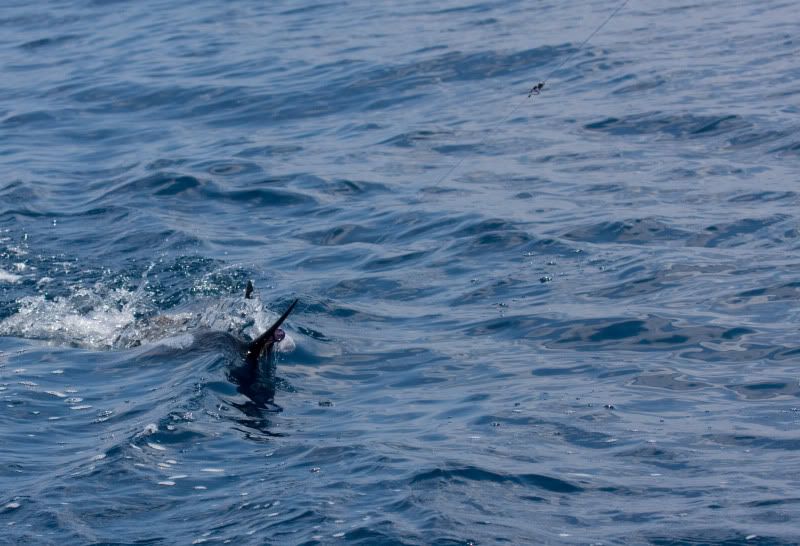 Pushed off a little after 4 from Hobcaw. Went down south with a decent number of boats. Pulled back at 630 when we saw a sail free jumping. We picked up our first sail, my first, just before 8 and then another around 1, another first for one of the crew. We had another one come in a little later and it knocked down half of our spread. Overall it was a great day on the water. The sails were out there (I think we saw at least 3 free jumping throughout the day), and the water was like a lake. Can’t wait to head back out. I’ll get the rest of the pictures up tomorrow.