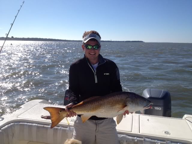 After waiting all day Saturday for weather to pass, headed out to Calibogue Sound, in front of Harbour Town to see if reds still around. Pretty windy but very nice morning. No other boats fishing the rip. Ben from Sav. Ga caught one nice red before had to head for the hill at noon. One of my fishing mates, Stephen Page, a newlywed, had to return to his new , young wife in Columbia - apparently a big sale at Bed Bath and Beyond today. I am sure they had fun!![]()