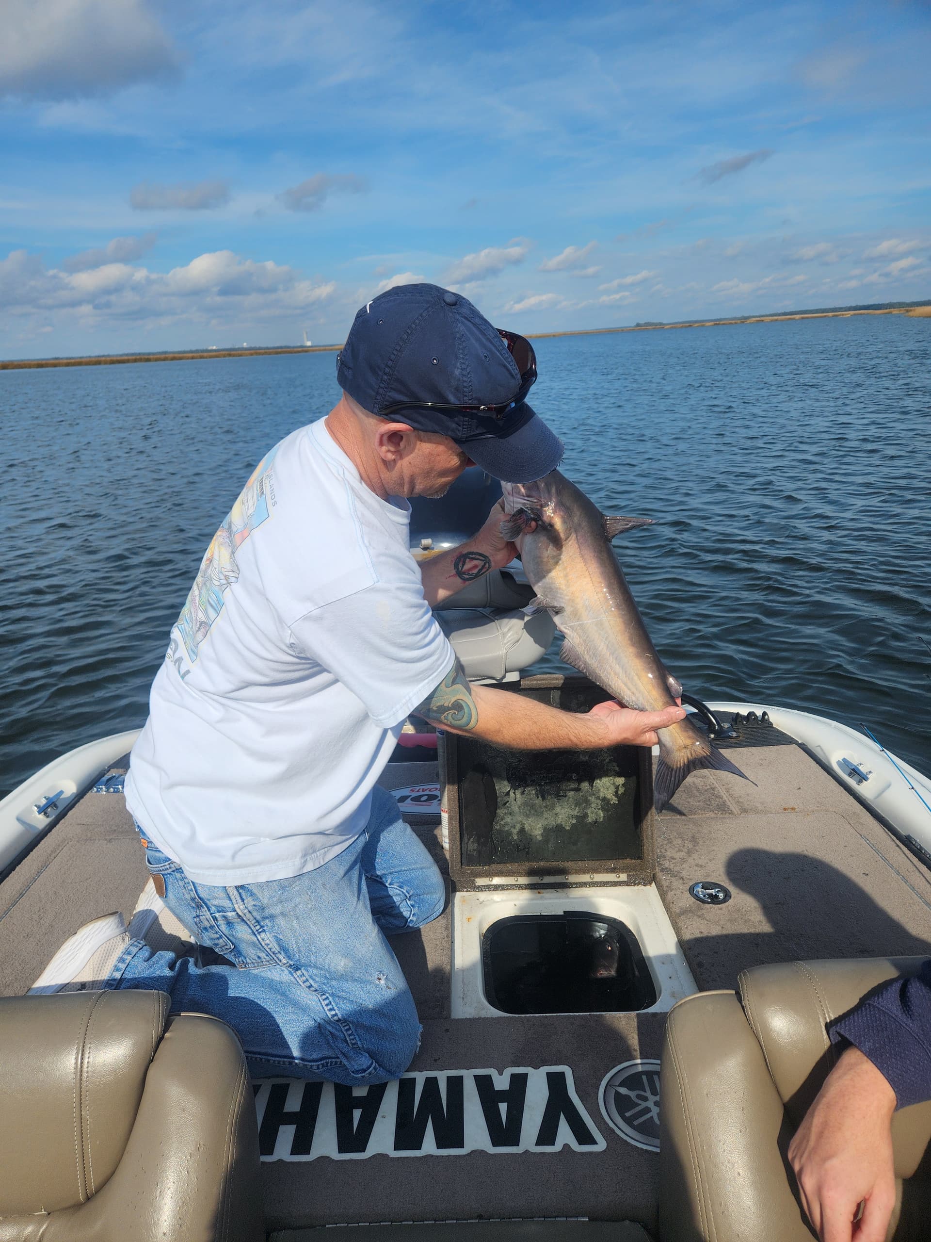 Had a nice morning at Bushy park. Doing some trouble shooting on a random alarm so stayed fairly close to landing. Took my girlfriend’s son who’s only fished in Charleston a couple of times without much luck. He had a great time & caught a few fish. Had a couple blow ups but, missed on topwater. Caught 5 smaller trout & a small flounder on grubs, 4 rays & 7 good eating size catfish on shrimp. Kept 5 catfish & 1 trout in livewell till it was time to head out and decided with thanksgiving prep, didn’t have the time to clean & cook fish too, so released all to catch another day ![]()