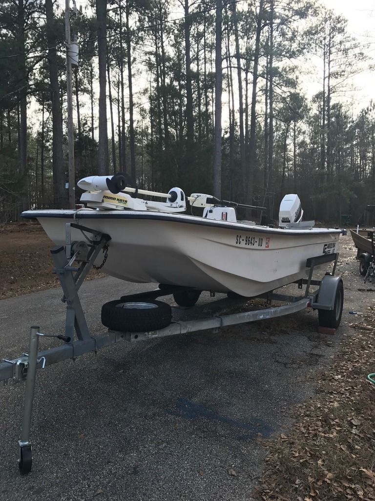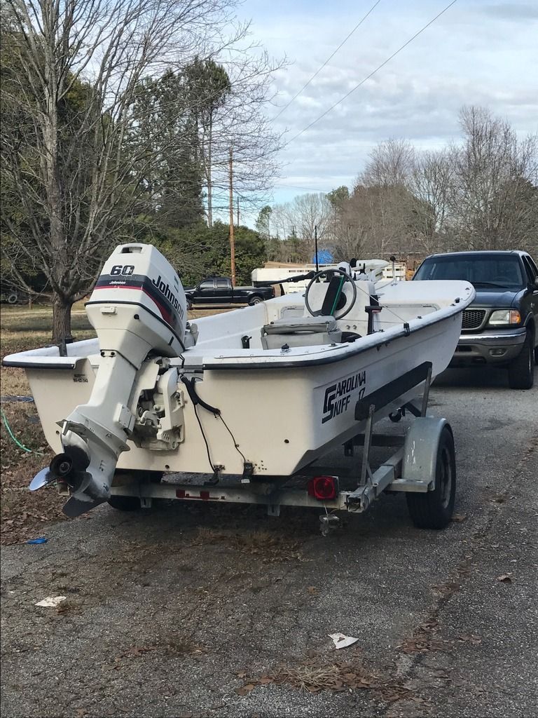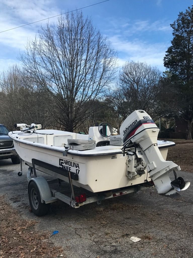 The time has come to upgrade my skiff to something a little bigger. This boat has been a great one for me over the last 2 and a half years I have owned it. The boat is a 95 and the motor is a 98 3 cylinder Johnson 60 with the oil injection removed and is run on premix. I have run no-ethanol fuel the entire time I have owned it. The compression on the motor is 136-135-135 from top to bottom and would be glad to show to any prospective buyers. Has a 12 gallon tank and I never run below a half tank on a day fishing, boat is very efficient. The boat has a Minn-Kota riptide 55 with a heavy duty mount and a Lowrance Elite 5 HDI with GPS, as well as driftmaster style rod holders with low profile mounts all around the boat. The only thing that doesn’t work is the radio and it hasn’t worked since I have owned the boat. I also have a seat for the front that can be included. The galvanized trailer is in good shape and is ready to go anywhere. I have a clean title to the boat and motor in hand.