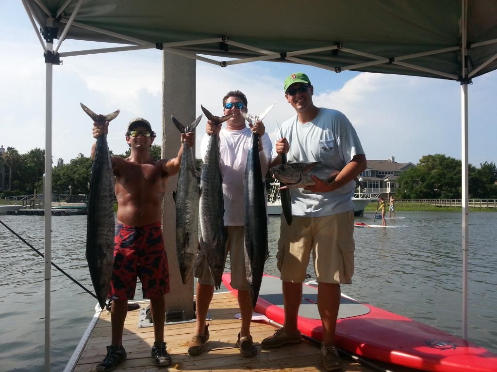 Took the soon to be father n law and brother in law out for their first ride on Chasin Bills II. Started south of edisto banks in 120 ft and worked our way out to around 220. Picked up a nice blackfin around 120 ft, then a little slinger. Once we got in 150-200 ft the wahoos started showing up. Caught 3, all on planer rod. Started pushing towards edisto banks and started pickin at the cudas when a pod of sails moved in, kept one hooked up for a little bit, and I believe a cuda ate the swivel. Also got a nice king. Not a bad day for mid July.