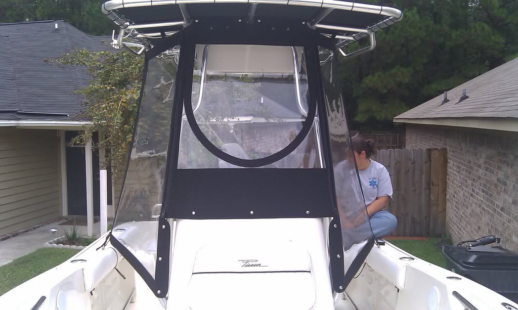 Nice looking enclosure. Getting there and back dry & warm are worth the investment. Chip Peagler has done 3 of my boats thus far. He knows what works and does excellent quality work. Not shy to recommend him. 843-696-5627