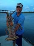 loaded the boat with 5 divers and went looking for some clear water south after reports of crappy viz to the north on fri!jordan started out the day with fresh sausage and egg wraps, sweet breakfast! tried some #s around the deck house and the viz was around 15’ and milky. grabbed a few bugs but no shooters. miss emily called and said they were having success farther north so we made the run and it paid off. they invited us to dive their #s but we had a lot of our own within a few miles so we moved on. ended up with some gags, scamps, 7 lobster(eric caught 3 from 8/10lbs with eggs, released. proud of him)a queen trigger and a few other bottom dwellers. 20’ viz and 78 on the surface and 72 on the bottom, first time we have seen a thermocline this yr. the viz has gotten worse the last 2 weeks, all the rain i guess. eric provided our lunch, shrimp and fish wraps, outstanding! crew would not let me take a pic with this old girl, said I had more barnacles then she did! we got our stud muffin from rock hill, loose shoe to compliment my large bug.