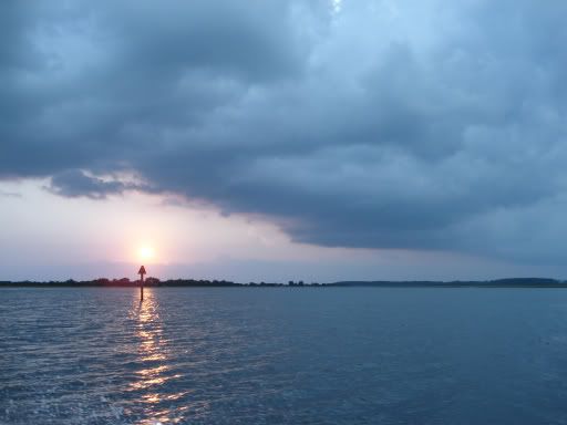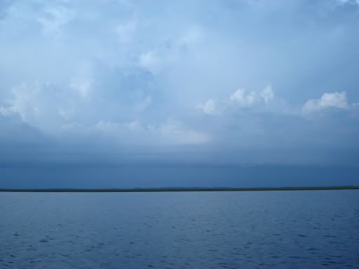 We were on a sunset cruise about 6:30pm behind Morgan. we saw a few shrimpers out in the sound and a few in the ICW. I stop to take a pic and listen to the weather radio. I hear a severe storm warning for Charleston and Colleton until 7:00. The storm was headed Southwest. The whole time I had blue skies and sun to my face. I turn to look back to the Northeast and see the meanest collection of thunderheads that I have ever seen. I tucked tail and headed stright into it expecting the worst but luckily the storms stopped and I was able to past under.