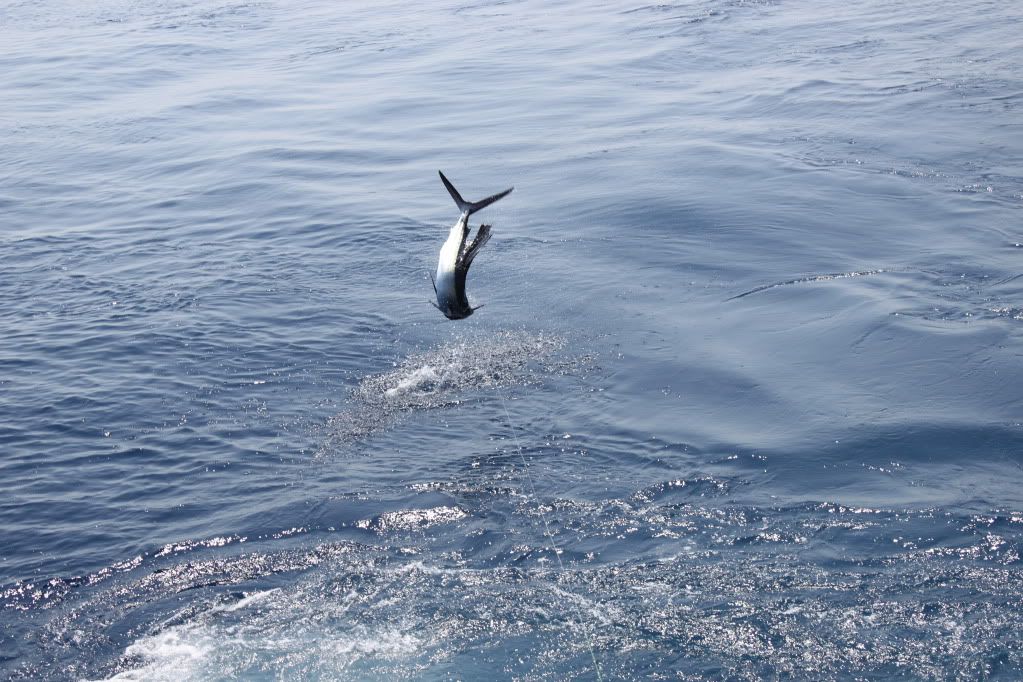 Despite a schizophrenic auto-pilot & the constant threat of getting weed-whacked, a pretty good catch of meatfish and the sails showing up for the classic end-of-day tournament climax. Fun day on the Ocean.