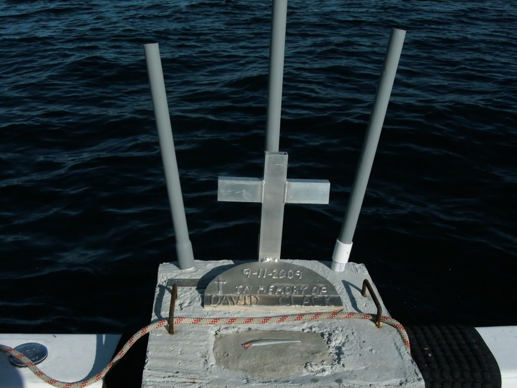 David a real good friend and fishing partner of mine for 25 years died last Sept at 46 years old. Our last trip fishing together in the early summer we found a new bottom spot to fish that were covered up in gags and c. bass he mentioned at that time that when he died he wanted to become part of a reef. Finally after many months I was able to take his ashes that I made into a monument out to his fishing spot. Saturday was the perfect day… pulled up to the spot and caught blk bass all day 14-19" no trash fish and only one shark… when it was time to head to the hill he was lowered to his final resting spot, he will be missed but I will visit everytime I head offshore.