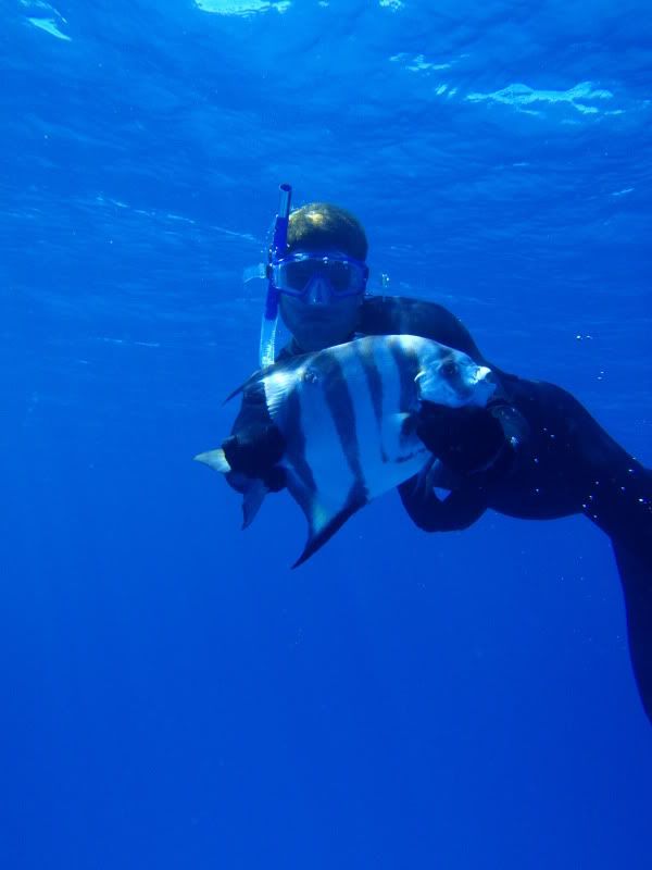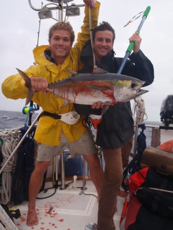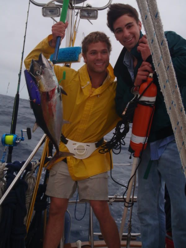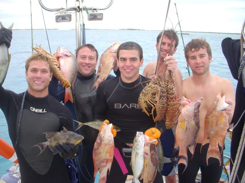 Didnt fish much until we got down to Florida. Caught an 8lb. cero mackerel in 30 ft. of water on a lehi blue/white plain skirt. Sailed across the gulf stream heading East. Went 1/2 on the Sailfish. The first one basically spooled us before we could get the sails down, haha. The second one we were more prepared, left the sails up and Capt. Smith sailed right after the sail, Capt. Mike did a great job angling it, I leaderd it and released it safe. Ironic to get a sail on a sailboat. Raised hell in the Bahamas with the guys, stocking up and cooking fresh caught lobsters and conch fritters, along with some hawaiian sling action ont the hogfish, grouper and mutton snappers. On the sail back, caught a blackfin tuna on a purple yozuri lure, you can see the lure in the pic. Can get those at Haddrells and are simply great all around lures.