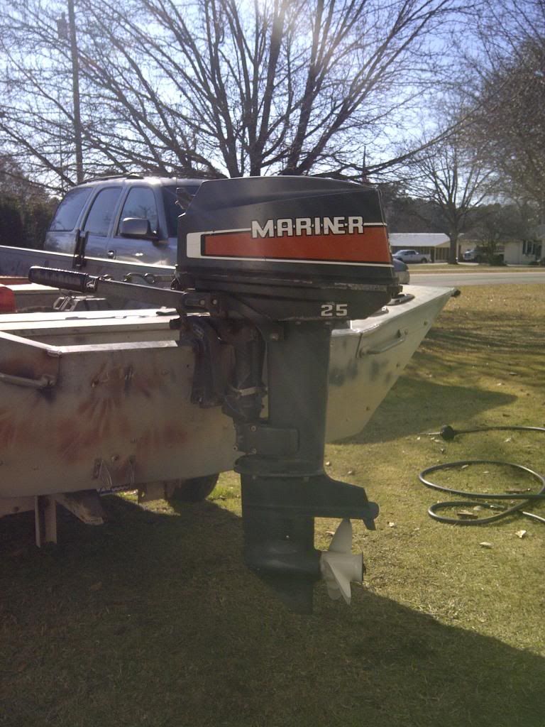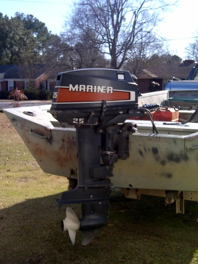 SOLD; For Sale: 1984 Mariner, 25hp, short shaft, tiller. This is a great motor for most any jon boat. The only reason Im selling is b/c I upgraded to a 40hp. Im not sure if my dad was the original owner of the motor or not, but he got it in 1985 and its been with us the entire time. Nothing wrong with it to speak of…It does have an electric starter that burnt out in it back in the mid 90s and we’ve just pull started it ever since. Manual tilt and trim. Motor is ready to go mount and ride, no work needed. $800.00