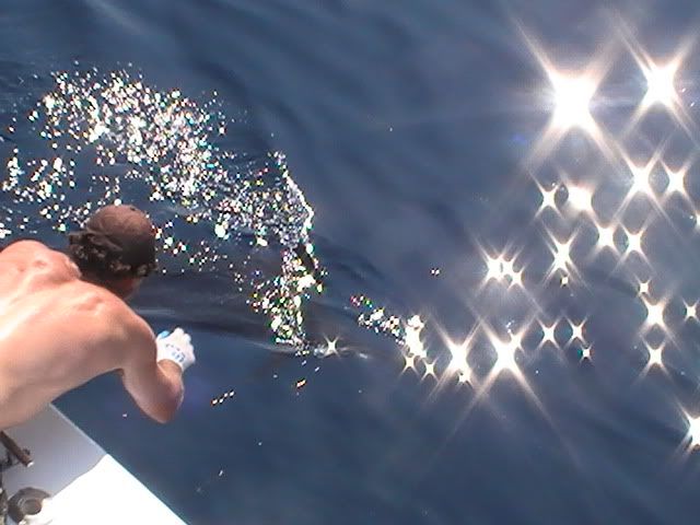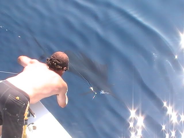 Took a group out from Carolina International Trucking on Friday, stopped at the Southwest Bank along with several other boats and it was DEAD, eased up towards the GTH and came across a crab pot float that held a bunch of schooly dolphin, broke out the spinning rods and had a blast. Caught 15 slingers and a real nice bull and even caught a nice 5 lb triple tail as a bonus. Left there and trolled to the GTH, pulled in the port teaser alongside the boat and a sail came in on it and lit up. Awesome to see in the calm blue water. Dropped the teaser back and we hooked it up. Bite was slow for the rest of the day, picked up a couple more nice dolphin and a tuna. Everyone on the charter had a great time, they will be scheduling two more charters in the fall.