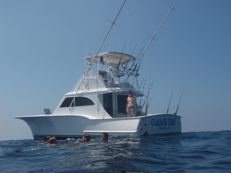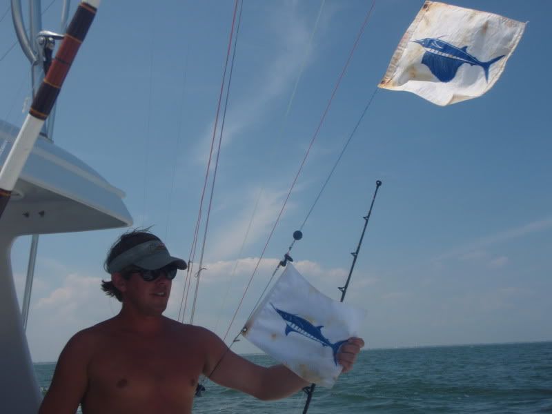 Fished out deep and found the tuna and marlin first thing in the morning on the 4th. The tunas were busting the water and we got covered up once pulling a couple off. As more and more boats approached where we were fishing, the tunas went down but not before we got a marlin off of the same pod of bait.