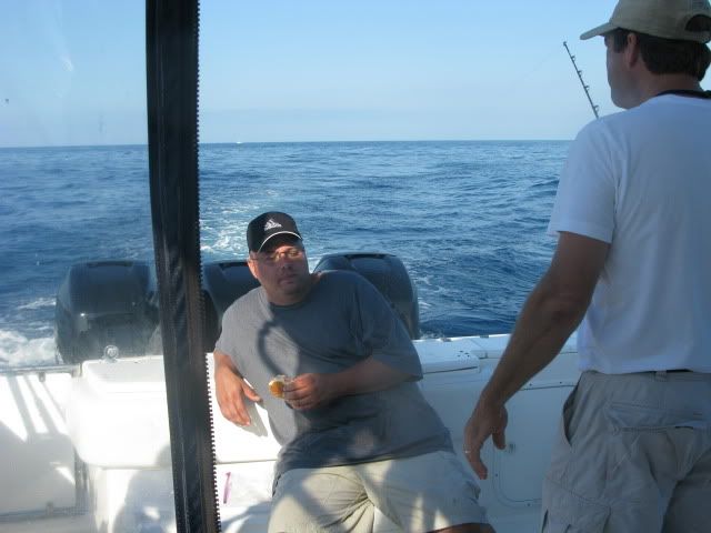 heading back in Lee has it set on autopilot…we are all cruising at 25mph…ok…so you know lee better than that…we were CRUISING…and nodding…look up and stan has this head bobbin deep sleep going on…I yell FISH ON!!!..and he jumps like someone put a st