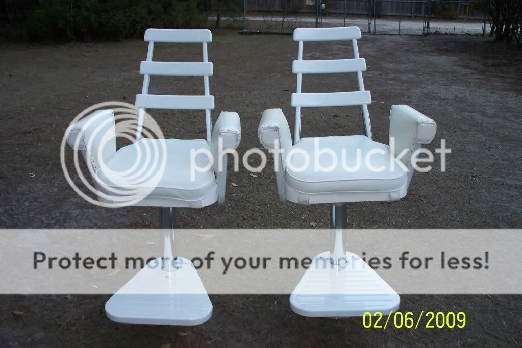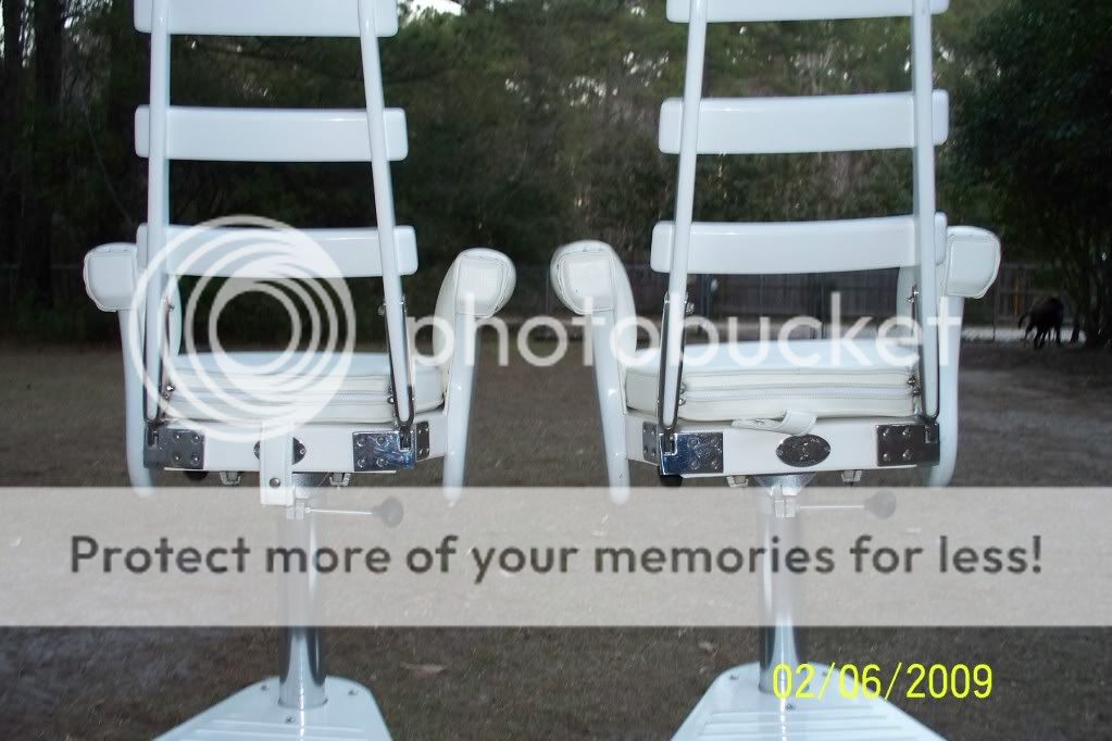 2 Pompanette helm chairs,have been in storage for approx. 6yrs, SST pedistals, with back cushions and footrests. $1200 OBO 843-338-8049