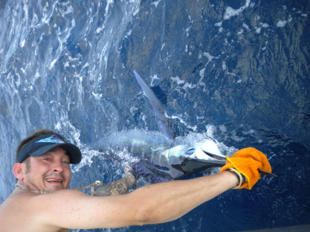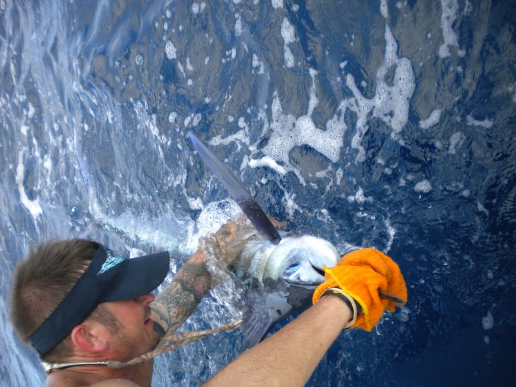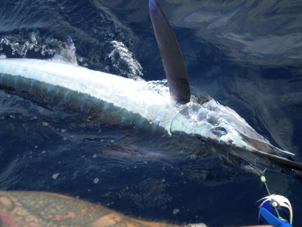 Decided to fish the afternoon bite yesterday. Left the dock at 2pm, lines in by 4:30 in 200 foot off SW Banks. Caught a few nice dolphin and tagged one (10 in the past week). Right around 6pm missed a white on the longrigger and as we were re-baiting had another smaller white slam the birds. 1 for 2 on whites and a beautiful sunset. Very calm afternoon ocean.