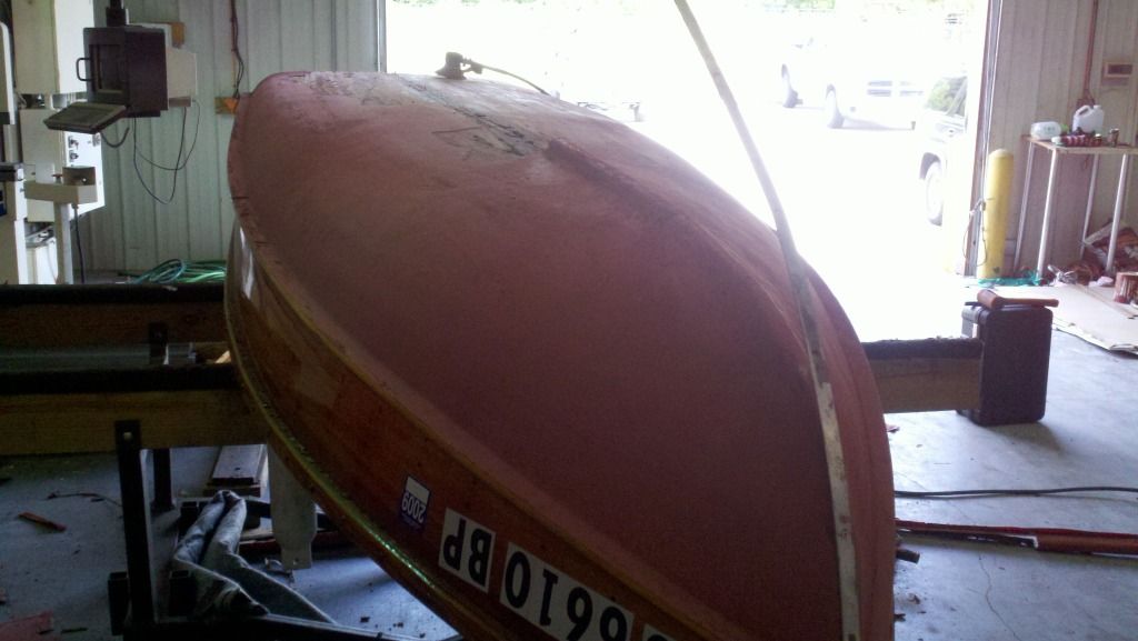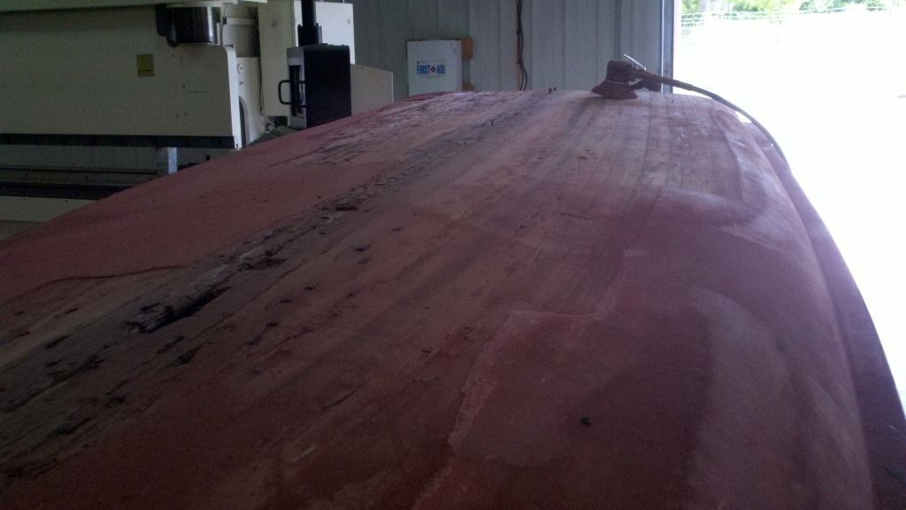 Finally got the boat flipped and started to strip the bottom. As I figured the keel was completely rotten along with a small portion of the strips. The bottom had already been glassed a long time ago and after looking at what im working with, im probably gonna just reglass the bottom and leave the paint off. Any tips or suggestions greatly appreciated!