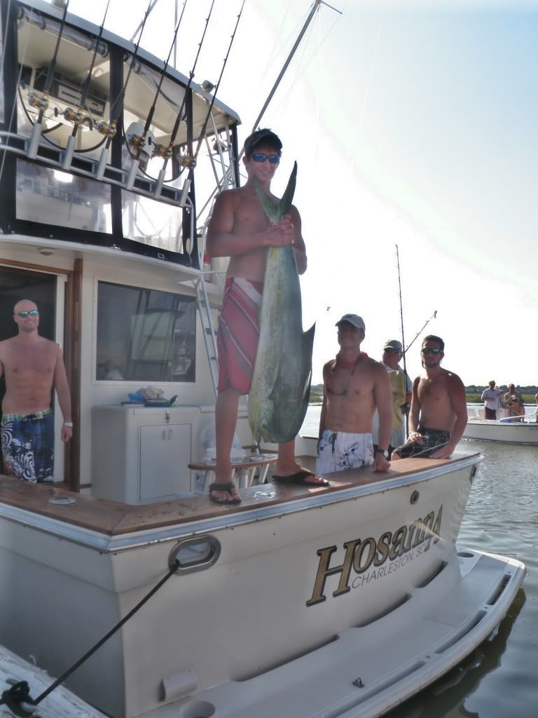 Quite an elation to boat the 53.4lb wahoo that took 1st place in division, especially because the wahoo have been elusive for us this year. Excellent angling by George Campsen…and if you can believe it, the fish hit a rigged black and red on the wireline…imagine that. Had a decent mahi bite and Boyce Campsen was in the money with his 24lb dolphin until the last boat weighed in. Great, well organized annual tournament that has become a family tradition for us. Thanks to the sponsors and committee for the hard word.