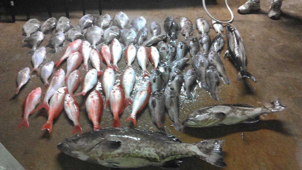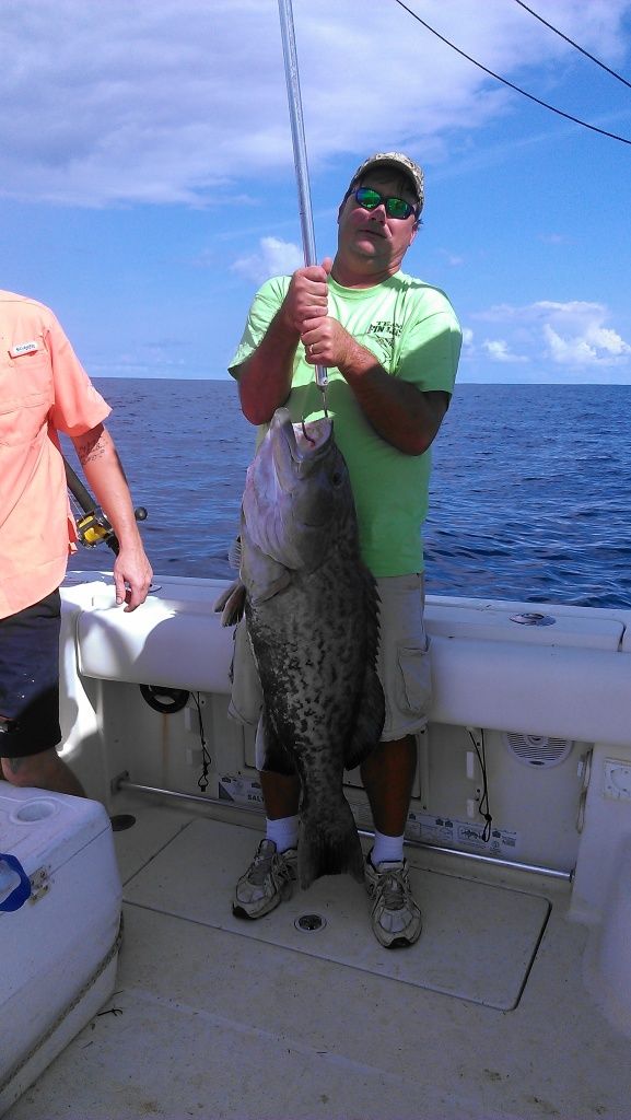 Had a great day on the ledge today. Started off catching 10 red snapper and finally had to move to put some meat in the box. Put the biggest gag ever on my boat today. Gonna put it on some scales in the morning to get a weight. what yall think ?