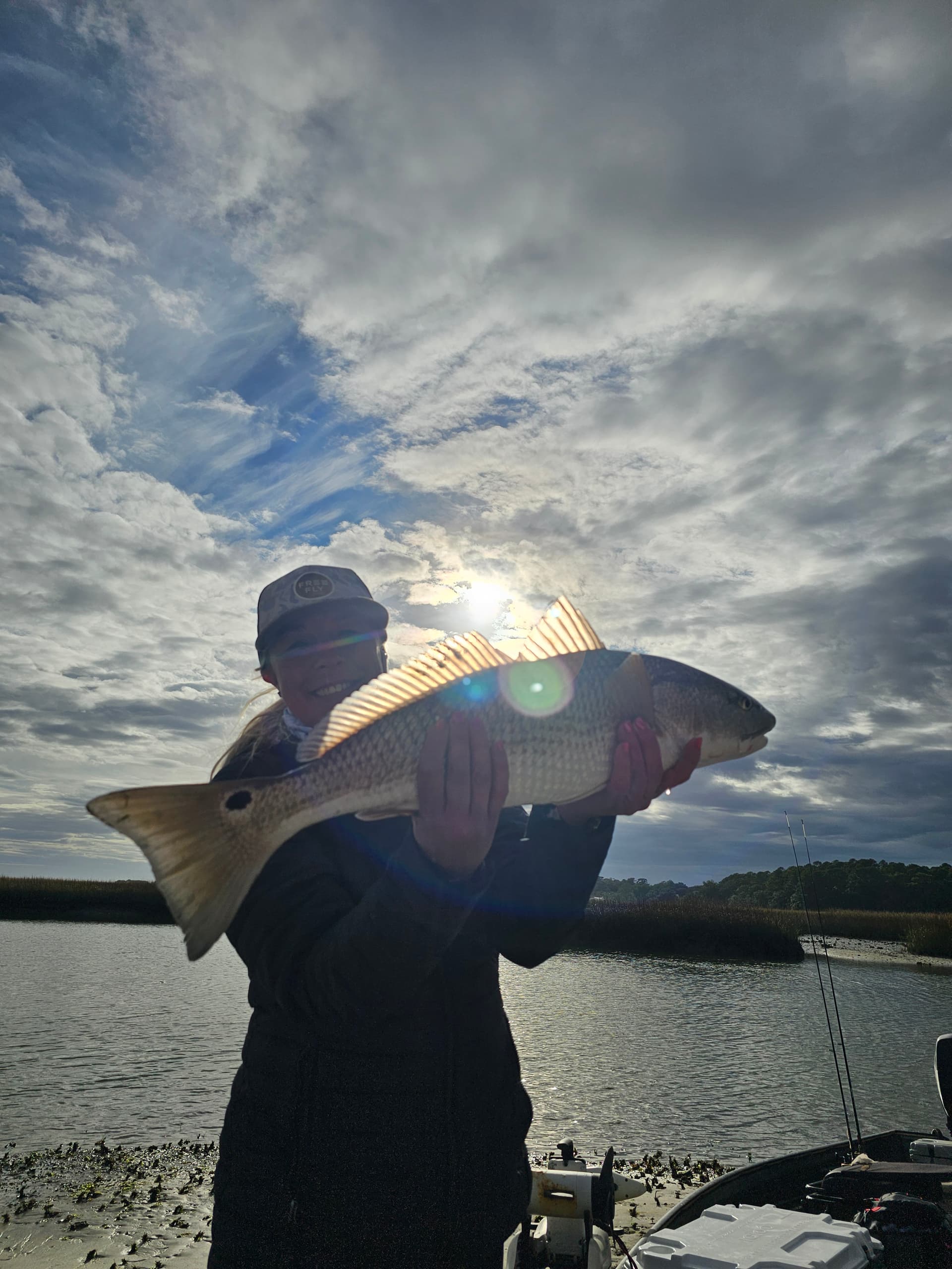 Took another friend out today that’s been showing off her freshwater catches recently and I asked had she ever caught redfish before…she said nope and I replied when I call you and tell you I got a surprise, just roll with it. Today was that day!!! She caught her 1st red all the way up to her 12th red today and only had 1 got off early. 16.25"-28" not bad for a beginner!!!