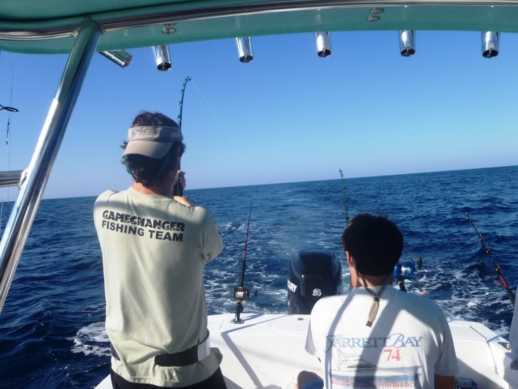 Headed out deeper looking for a small temp break I saw the night before (74 to 76) but never found it. Caught a large shark in 600 ft on the planer rod and three dolphin in 400-600 feet. We fished the SCSSA but couldn’t find a money fish.