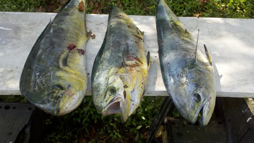 Had a couple good sized dolphin spit the hook after a short fight. Also had a bite off on the cedar plug. Heard some billfish being caught down south on the radio, including a couple of blues.