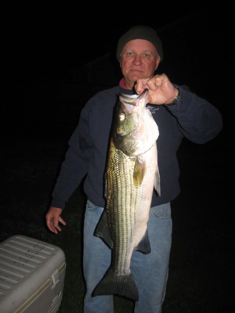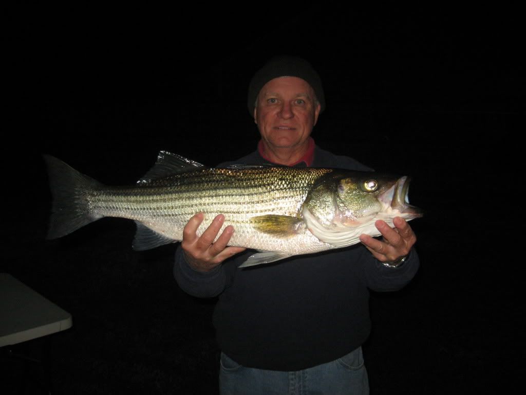 Well, Long Enuff and I decided that we would give the striper another try last night. We made a pass past the dam and down the dike toward Atkins with nothing. We turned around and started back when we hooked and landed a decent 30" striper. That was it, but it’s a start! It was blowing and rough as a cob out there. We trolled around a little longer before calling it a night. We did mark more fish than in the previous trips so far this season.
