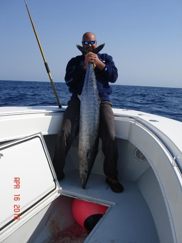 Found pretty 71 degree water at the 100/400 which cooled quickly to 67 degrees along a weedline running to the blackjack. Nice weedline along the break but it was in 68 degree water and no bites along it. We doodled around and wasted an hour on it then concentrated on the 71 degree water. We got 2 wahoo bites, boating one 47lber and breaking another one off at the boat, looked like his twin. Also got a FAT blackfin tuna, a couple slimy mackerels and the surprise of the day was a 60 inch mako shark: my favorite eating fish in the sea. Hope that mako is a sign that them tunas gonna be here. We forgot the shotgun which made it interesting.