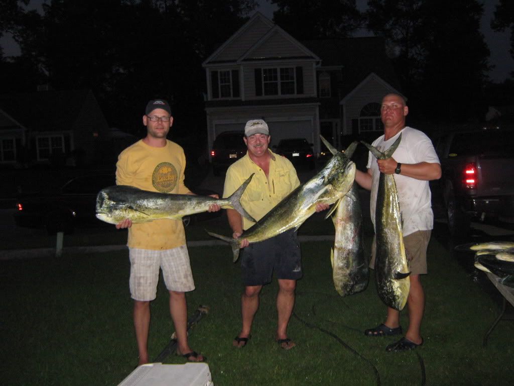 Very nice Lynn. We put in the same time at shem creek.It’s always good to finally put a face with a name. I think we fished the same weed line you guys fished but left it around 11 or so because we got tired of fighting all the scattered weeds.Ended up with 13 phins and a hoo.I bet with a quadrupal hook-up it looked like a chinese fire drill. Great Job!!!