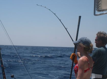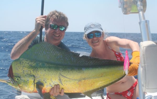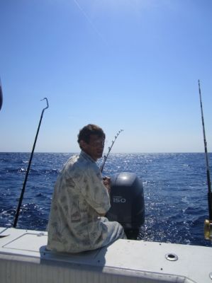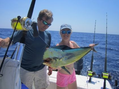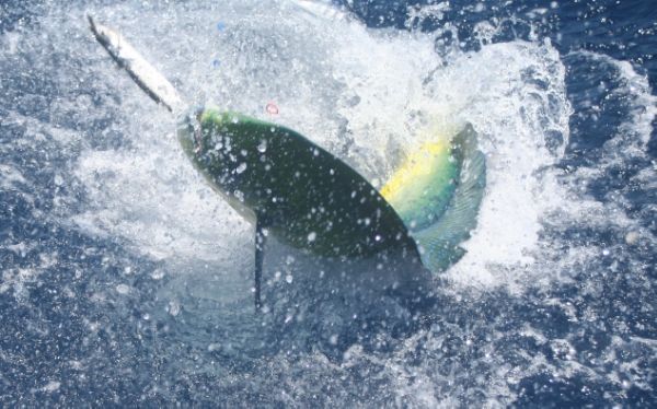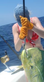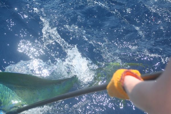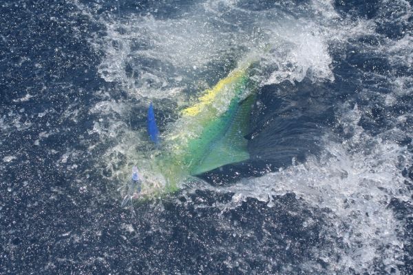 Put lines in once we hit blue water. As I was letting out the last line, BAMMM!!! Mahi Mahi